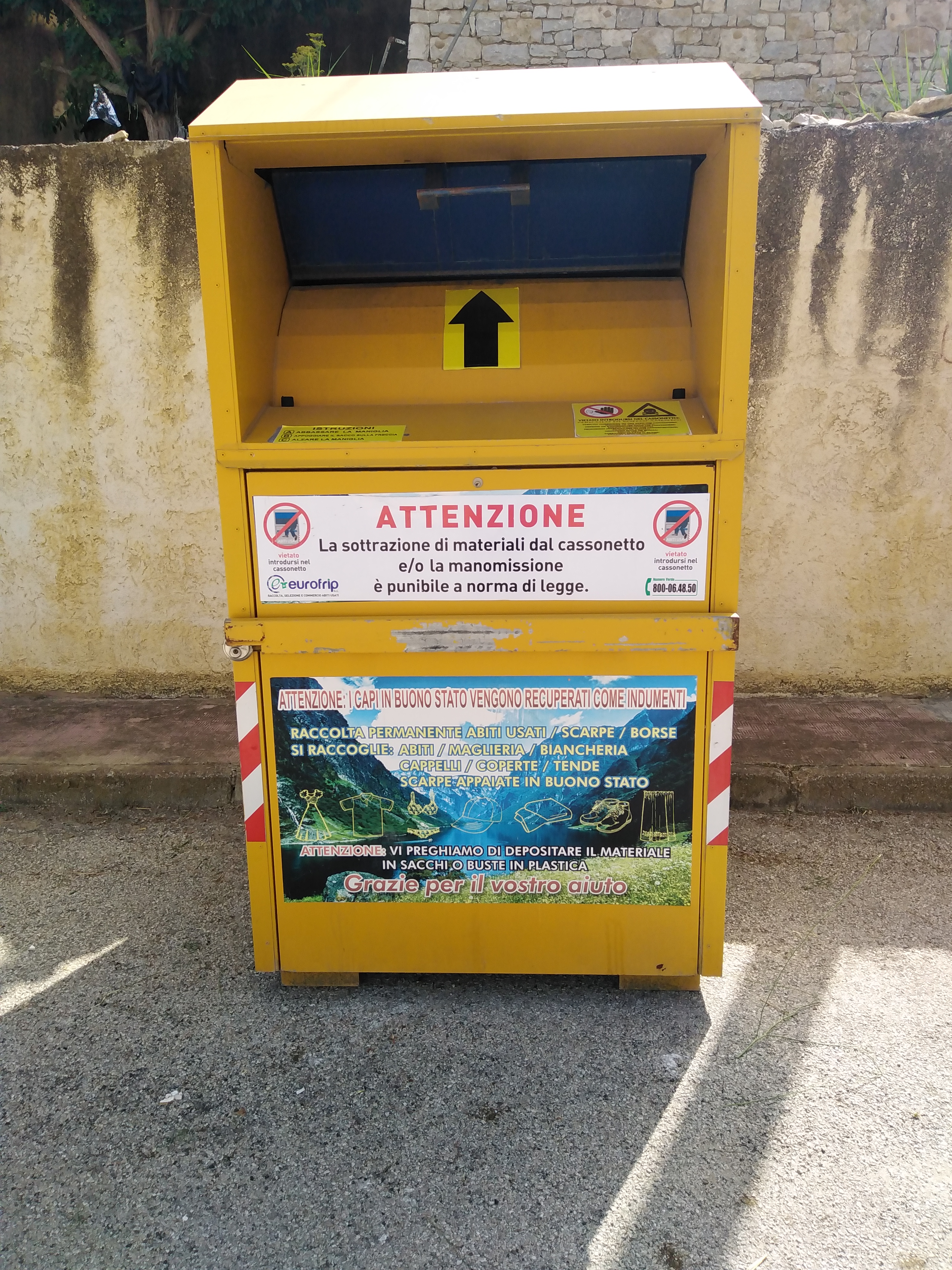AVVISO: Contenitore indumenti usati